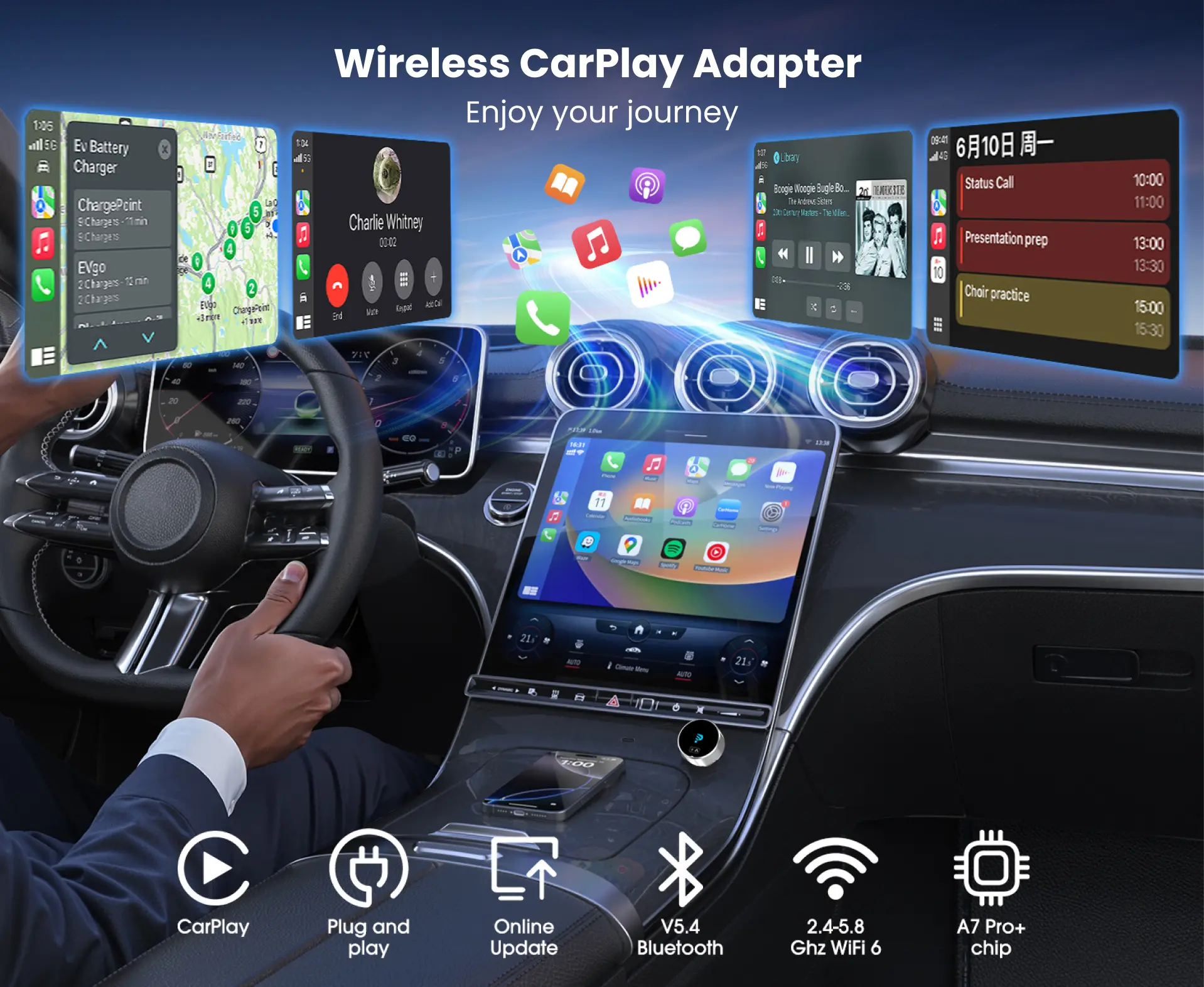 ✔️Full CarPlay Features – Enjoy navigation, music, calls, and Siri — all just like wired CarPlay.
